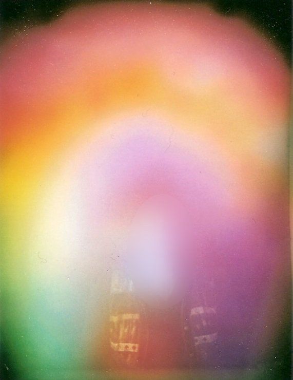 Sur la gauche, un orange créatif et expressif a pris place dans son présent. On perçoit, sur le côté droit, la porte qui s’est ouverte vers une énergie spirituelle (violet-rose) qui a remplacé le jaune foncé d’«aspect sali» (le miasme mental dans lequel elle se sentait bloquée).